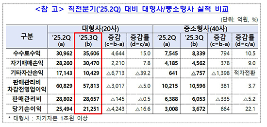 ÀÚ±âÀÚº» 1Á¶ ¿øÀÌ»ó ´ëÇü»çµéÀº ¼øÀÌÀÍÀÌ Àü ºÐ±â ´ëºñ µÎ ÀÚ¸´¼ö °¨¼Ò¸¦ ±â·ÏÇÑ ¹Ý¸é, Áß¼ÒÇü»ç´Â ¿ÀÈ÷·Á 20% ³Ñ°Ô ÀÌÀÍÀÌ ´Ã¸ç ¾ù°¥¸° È帧À» º¸¿´´Ù. ä±Ç °ü·Ã ¼ÕÀÍ ºÎÁøÀÌ ´ëÇü»ç¿¡ ÁýÁßµÈ ¹Ý¸é, Áß¼ÒÇü»ç´Â ¼ö¼ö·á¡¤¿©½Å ¼öÀÍÀ» Áß½ÉÀ¸·Î ¹æ¾î¿¡ ¼º°øÇß´Ù´Â Æò°¡°¡ ³ª¿Â´Ù.
