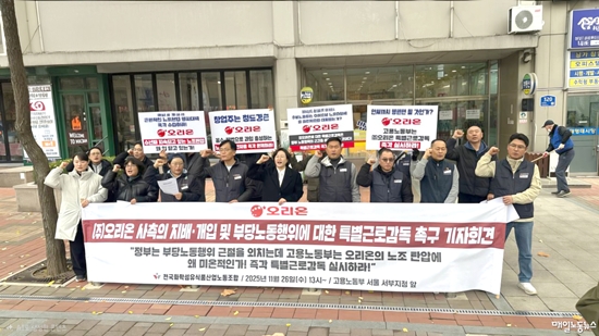 ¹ÎÁÖ³ëÃÑ »êÇÏ È¼¶½Äǰ³ëÁ¶ ¿À¸®¿ÂÁöȸ(ÀÌÇÏ ¹ÎÁÖ³ëÃÑ Áöȸ)´Â Áö³´Þ ¸» »çÃøÀÇ Á¶Á÷Àû Áö¹è¡¤°³ÀÔÀÌ ¹Ýº¹µÇ°í ÀÖ´Ù¸ç °í¿ë³ëµ¿ºÎ¿¡ Ưº°±Ù·Î°¨µ¶À» °ø½Ä ¿ä±¸ÇÏ°í ³ª¼¹´Ù. ¹Ý¸é ¿À¸®¿Â ÃøÀº ¡°Á¶ÇÕ È°µ¿¿¡ ¾î¶² ÇüÅ·εµ °³ÀÔÇϰųª °ü¿©ÇÏÁö ¾Ê´Â´Ù¡±¸ç ÀÇȤÀ» Àü¸é ºÎÀÎÇϰí ÀÖ¾î Áø½Ç °ø¹æÀÌ °¡¿µÉ Àü¸ÁÀÌ´Ù.