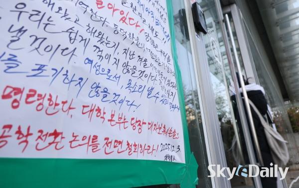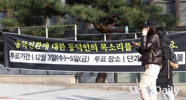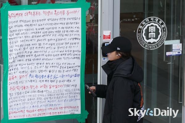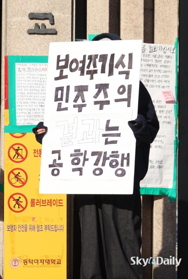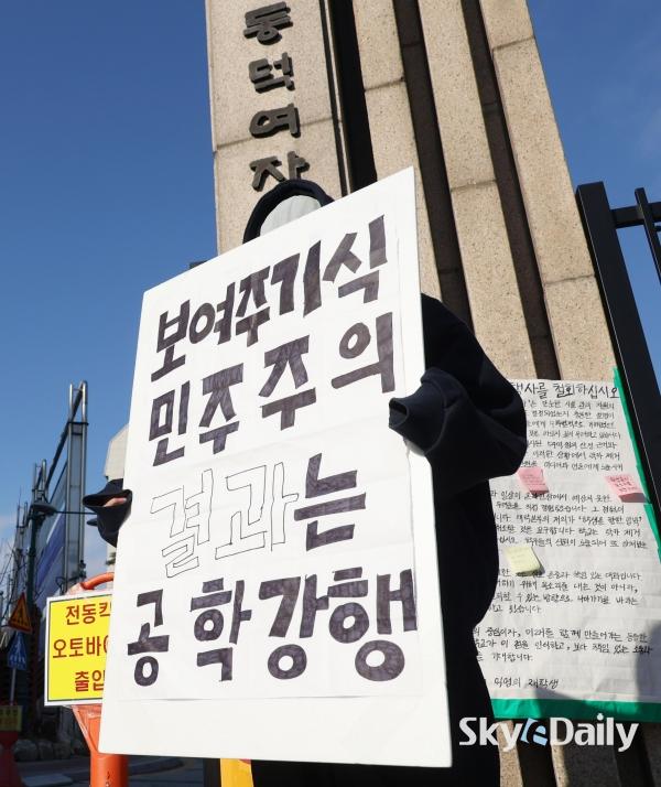 ¡ã µ¿´ö¿©ÀÚ´ëÇб³°¡ 2029³âºÎÅÍ ³²³à°øÇÐÀ¸·Î ÀüȯÇÏ°Ú´Ù°í ¹àÈù °¡¿îµ¥ 4ÀÏ ¿ÀÈÄ ¼¿ï ¼ººÏ±¸ µ¿´ö¿©´ë Á¤¹®¿¡¼ ÇÑ ÇлýÀÌ °øÇÐ Àüȯ ¹Ý´ë °ü·Ã 1ÀÎ ½ÃÀ§¸¦ Çϰí ÀÖ´Ù. µ¿´ö¿©ÀÚ´ëÇб³¿Í ÇлýµéÀº À̳¯ Ä·ÆÛ½º °Ç¹° °øÇÐ ¹Ý´ë Ç×ÀÇ ·¡Ä¿ Á¦°Å Çà»ç¿Í °øÇÐÀüȯ °Çà ¹Ý´ë ½ÃÀ§¸¦ °¢°¢ °èȹ¿¹Á¤À̾úÀ¸³ª µ¿´ö¿©´ë¸¦ °Ü³ÉÇÑ Èä±â³µ¿ ¿¹°í ±ÛÀÌ ÀÎÅͳݿ¡ ¿Ã¶ó¿À¸é¼ µÎ ÀÏÁ¤À» ÀáÁ¤ ¿¬±âÇß´Ù. ¹Ú¹Ì³ª ±âÀÚ ¨Ï½ºÄ«À̵¥Àϸ®