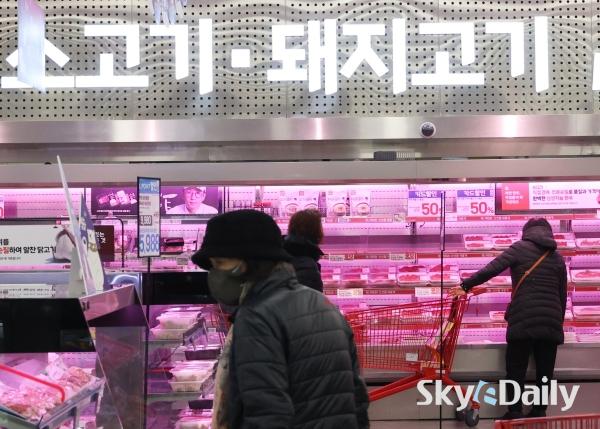 ¡ã ±âÈÄ ¿µÇâ°ú ȯÀ² »ó½ÂÀÌ µ¿½Ã¿¡ ÀÛ¿ëÇÏ¸ç ±¹³»¿Ü ½Äǰ °¡°Ý Àü¹ÝÀÌ ¾Ð¹ÚÀ» ¹Þ°í ÀÖ´Â °¡¿îµ¥ 8ÀÏ ¿ÀÈÄ ¼¿ï ½Ã³» ´ëÇü¸¶Æ®¸¦ ãÀº ½Ã¹ÎÀÌ ÀåÀ» º¸°í ÀÖ´Ù. ±¹°¡µ¥ÀÌÅÍó ±¹°¡Åë°èÆ÷ÅÐ(KOSIS)¿¡ µû¸£¸é Áö³´Þ ½Äǰ¹°°¡Áö¼ö´Â 127.1(2020³â=100)·Î Áý°èµÅ 5³â°£ 27.1% »ó½ÂÇÑ °ÍÀ¸·Î ³ªÅ¸³µ´Ù. ¹Ú¹Ì³ª ±âÀÚ ¨Ï½ºÄ«À̵¥Àϸ®