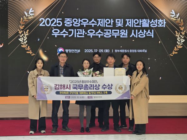 10ÀÏ ±èÇØ½Ã¿¡ µû¸£¸é ÇàÁ¤¾ÈÀüºÎ°¡ ÁÖ°üÇÑ ¡®2025³â Áß¾Ó¿ì¼öÁ¦¾È¡¯¿¡¼­ ÀÓ°æ¼ö ÆÀÀå°ú ±è¿¬Èñ ÁÖ¹«°üÀÇ ¡®Àü±¹ ÃÖÃÊ! ±¸³­½Ã¼³¡¤´ëÇÇÀå¼Ò ±æ ¾È³» ¼­ºñ½º ±¸Ã࡯ Á¦¾ÈÀÌ ±¹¹«ÃѸ®»óÀ» ¼ö»óÇß´Ù.