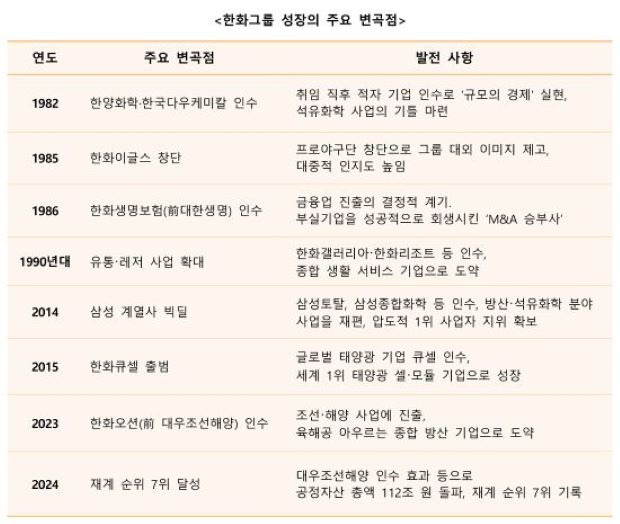 ±è ȸÀåÀº ÃëÀÓ 2³â Â÷ÀÎ 1982³âºÎÅÍ ÇѾçÈÇС¤°æÀο¡³ÊÁö¡¤ÇѾçÀ¯Åë µîÀ» ¿¬À̾î ÀμöÇÏ¸ç ±×·ìÀÇ ¸öÁýÀ» Àû±ØÀûÀ¸·Î Ű¿ì±â ½ÃÀÛÇß´Ù. ±×¸®°í ÀÌ·¯ÇÑ ÃʱâÀÇ ÀμöÇÕº´(M&A)À» ÅëÇØ ÇÑȱ׷ìÀ» ÇöÀçÀÇ ´ë±â¾÷À¸·Î ¼ºÀå½ÃŰ´Â ±âƲÀ» ¸¶·ÃÇß´Ù.
