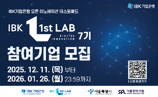 ±â¾÷ÀºÇàÀº ¼¿ïÇÉÅ×Å©·¦°ú ÇÔ²² Çõ½Å ½ÇÇèÀå ¡®IBK 1st LAB(ÆÛ½ºÆ® ·¦)¡¯ 7±â Âü¿©±â¾÷À» ¸ðÁýÇÑ´Ù°í 11ÀÏ ¹àÇû´Ù. ¾à 5°³ ³»¿ÜÀÇ ±â¼ú ½ºÅ¸Æ®¾÷À» ¼±¹ßÇÒ ¿¹Á¤ÀÌ´Ù.