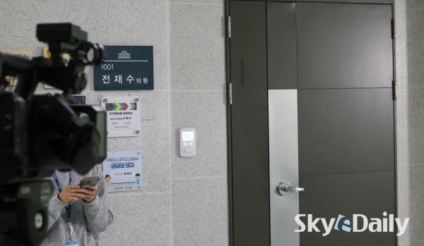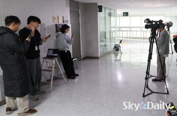 ¡ã °æÂûÀÌ Á¤Ä¡±Ç ÀλçµéÀÇ ÅëÀϱ³ ±Ýǰ ¼ö¼ö ÀÇȤ°ú °ü·ÃÇØ ù °­Á¦¼ö»ç¿¡ Âø¼öÇÑ 15ÀÏ ±¹È¸ÀÇ¿øÈ¸°ü ³» ÀüÀç¼ö Àü ÇØ¾ç¼ö»êºÎ Àå°ü »ç¹«½Ç ¾Õ¿¡ ÃëÀçÁøÀÌ ´ë±âÇϰí ÀÖ´Ù. ¹Ú¹Ì³ª ±âÀÚ ¨Ï½ºÄ«À̵¥Àϸ®