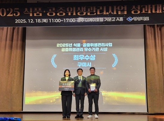 °æ»óºÏµµ ±¸¹Ì½Ã°¡ 18ÀÏ ´õÄÉÀÌÈ£ÅÚ °æÁÖ¿¡¼ ¿¸° ¡®2025³â °æ»óºÏµµ ½Äǰ¡¤°øÁßÀ§»ý°ü¸®»ç¾÷ ¼º°ú´ëȸ¡¯¿¡¼ °øÁßÀ§»ý»ç¾÷ ÃÖ¿ì¼ö»ó°ú ½Äǰ¾ÈÀü°ü¸® Ưº°»óÀ» µ¿½Ã¿¡ ¼ö»óÇÏ´Â ¿µ¿¹¸¦ ¾È¾Ò´Ù.