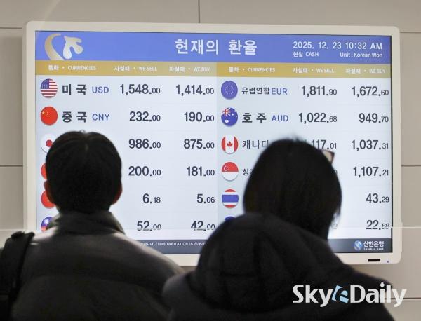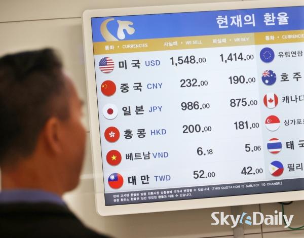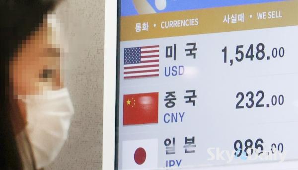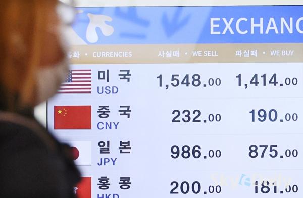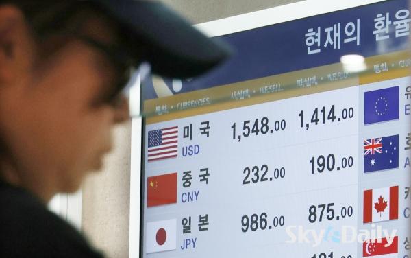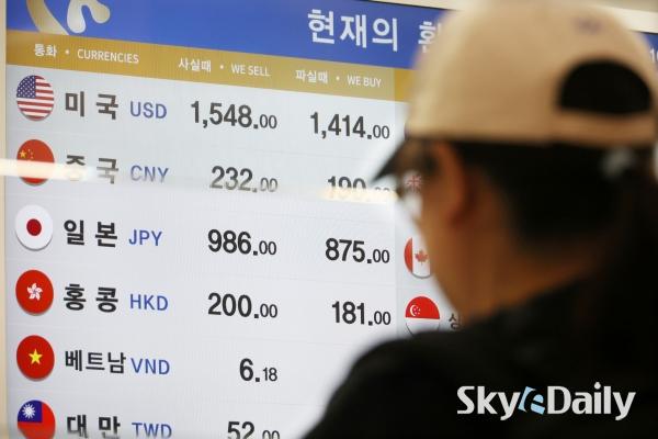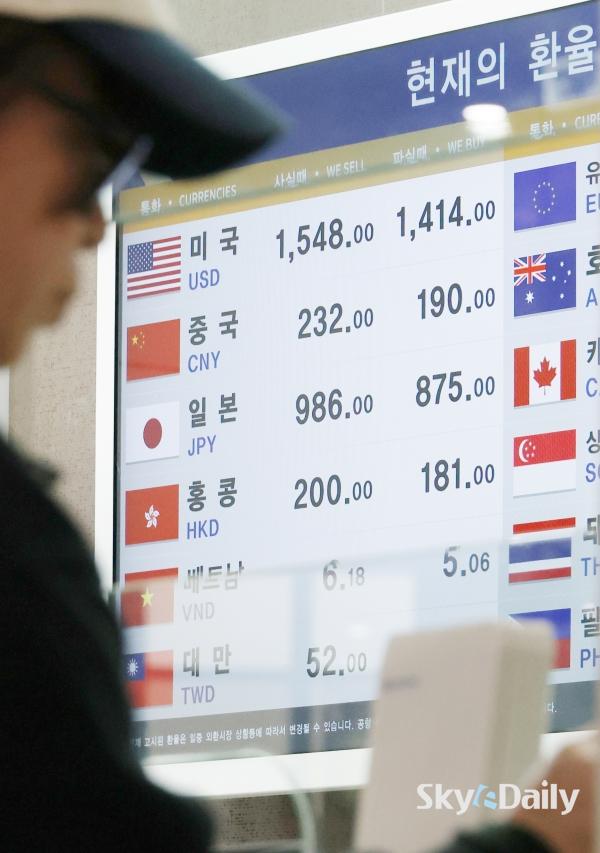 ¡ã ¿ø¡¤´Þ·¯ ȯÀ²ÀÌ °í°øÇàÁø ÇÏ¸ç ¿¬°íÁ¡¿¡ °¡±î¿öÁø 23ÀÏ ±èÆ÷±¹Á¦°øÇ× ±¹Á¦¼± Å͹̳ΠÇÑ ÀºÇà ȯÀü¼Ò Àü±¤ÆÇ¿¡ ¿ø¡¤´Þ·¯ ȯÀ²ÀÌ Ç¥½ÃµÇ°í ÀÖ´Ù. ¼¿ï¿Ü±¹È¯Áß°³¿¡ µû¸£¸é À̳¯ ¿ÀÀü 9½Ã 32ºÐ ±âÁØ È¯À²Àº Àü °Å·¡ÀÏ Á¾°¡(1480.1¿ø)º¸´Ù 2.65¿ø ¿À¸¥ 1482.75¿ø¿¡¼ °Å·¡µÇ¸é¼ ÀåÁß °í°¡ ±âÁØÀ¸·Î Áö³ 4¿ù 9ÀÏ(1487.6¿ø) ÀÌÈÄ ¾à 8°³¿ù ¸¸¿¡ ÃÖ°íÄ¡¸¦ ±â·ÏÇß´Ù. ¹Ú¹Ì³ª ±âÀÚ ¨Ï½ºÄ«À̵¥Àϸ®
