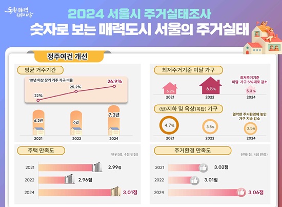 ¼¿ï½Ã´Â ¡®2024 ¼¿ï½Ã ÁְŽÇÅÂÁ¶»ç¡¯ °á°ú¸¦ ÅëÇØ ÃÖ±Ù 4³â°£ ½Ã¹ÎÀÇ Æò±Õ °ÅÁֱⰣÀÌ 2022³â 6³â¿¡¼ 2024³â 7.3³âÀ¸·Î Áõ°¡Çß´Ù°í 28ÀÏ ¹àÇû´Ù. Á¶»ç´Â ±¹Åä±³ÅëºÎ Á¶»ç 7õ °¡±¸¿¡ ¼¿ï½Ã ÀÚü Ç¥º»À» ´õÇØ ÃÑ 1¸¸5õ °¡±¸·Î È®´ë Á¶»çÇÑ °á°ú´Ù.