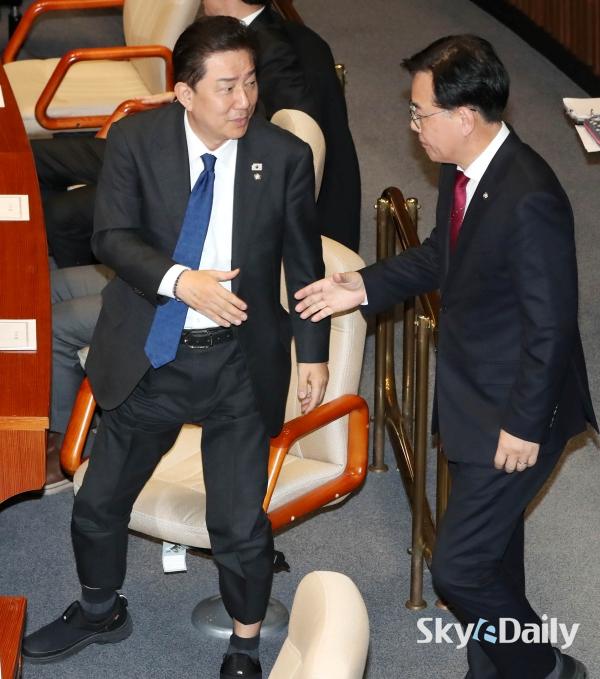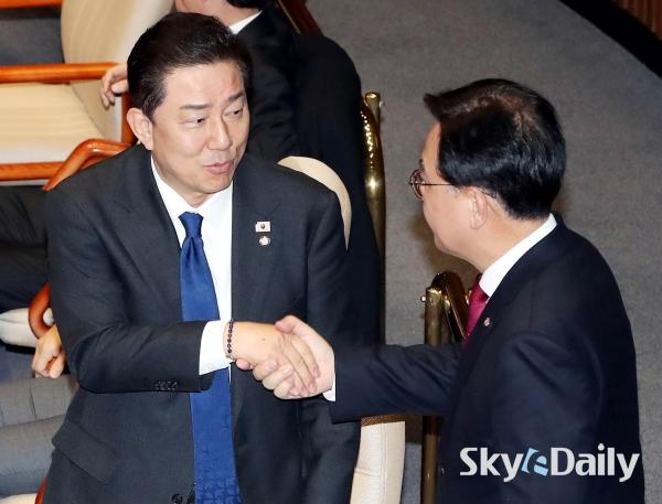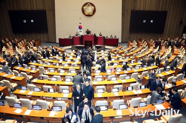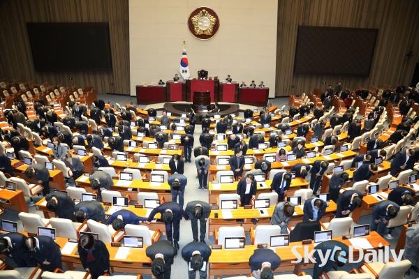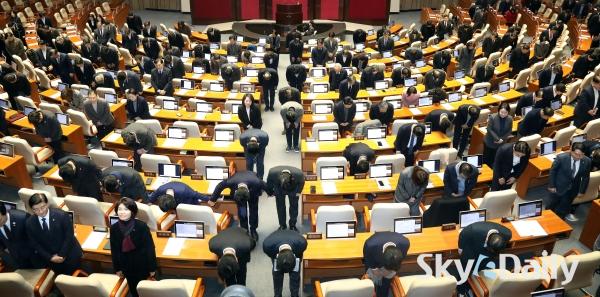 ¡ã 30ÀÏ ±¹È¸ º»È¸ÀÇ »êȸ¸¦ ¾ÕµÎ°í ¿©¾ß ÀÇ¿øµéÀÌ ÀλçÇϰí ÀÖ´Ù. À̳¯ º»È¸ÀÇ¿¡¼´Â ±èȣö °¨»ç¿øÀå Èĺ¸ÀÚ¿¡ ´ëÇÑ ÀÓ¸íµ¿ÀǾÈÀÌ °¡°áµÇ°í Çü¹ý °³Á¤¾È µî ºñÀïÁ¡ ¹ý¾È 6°Çµµ º»È¸ÀǸ¦ Åë°úÇßÁö¸¸ ¡®ÅëÀϱ³ Ư°Ë¹ý¡¯Àº ¿©¾ß ÇÕÀǰ¡ ÀÌ·ïÁöÁö ¾ÊÀ¸¸é¼ »óÁ¤ÀÌ ºÒ¹ßµÆ´Ù. ¹Ú¹Ì³ª ±âÀÚ ¨Ï½ºÄ«À̵¥Àϸ®