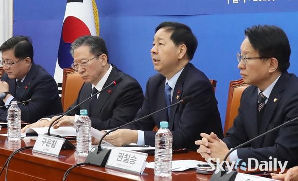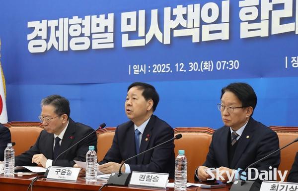 ¡ã ±¸À±Ã¶ ºÎÃѸ® °â ±âȹÀçÁ¤ºÎ Àå°ü(°¡¿îµ¥)ÀÌ 30ÀÏ ±¹È¸¿¡¼ ¿¸° °æÁ¦Çü¹ú ¹Î»çÃ¥ÀÓ ÇÕ¸®È Á¦2Â÷ ´çÁ¤ÇùÀÇ¿¡ Âü¼®ÇØ ¹ß¾ðÇϰí ÀÖ´Ù. ´õºÒ¾î¹ÎÁÖ´ç°ú Á¤ºÎ´Â À̳¯ ±â¾÷ÀÇ Áß´ë À§¹ýÇàÀ§¿¡ ´ëÇÑ °ú¡±ÝÀ» ´ëÆø °ÈÇÏ°í °æ¹ÌÇÑ »ç¾È¿¡ ´ëÇÑ Çü¹úÀº °úÅ·á·Î ÀüȯÇϱâ·Î Çß´Ù. ±¸ ºÎÃѸ®´Â ¡°ºÒ°øÁ¤ °Å·¡ ÇàÀ§³ª À§Ä¡ Á¤º¸ À¯Ãâ ¹æÁö ³ë·ÂÀÇ ¹Ìºñ µî¿¡ ´ëÇØ Çü¹ú Á᫐ °üÇà¿¡¼ ¹þ¾î³ª ½ÃÁ¤ ¸í·É°ú ÇÔ²² ´ëÆø »óÇâµÈ °ú¡±ÝÀ» ÅëÇØ ±â¾÷ À§¹ýÇàÀ§¸¦ ½ÇÈ¿ÀûÀ¸·Î ¾ïÁ¦Çϰڴ١±°í ¹àÇû´Ù. ÀÌÁ¾¿ø ±âÀÚ ¨Ï½ºÄ«À̵¥Àϸ®