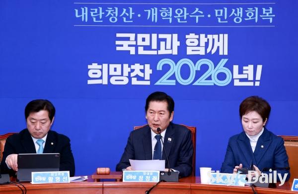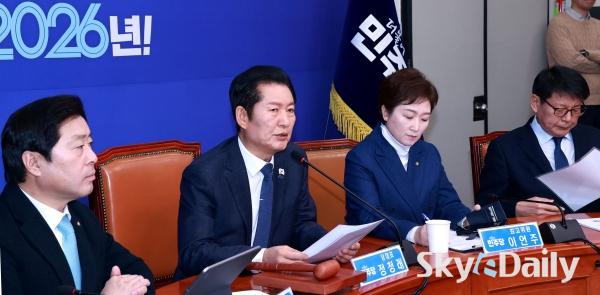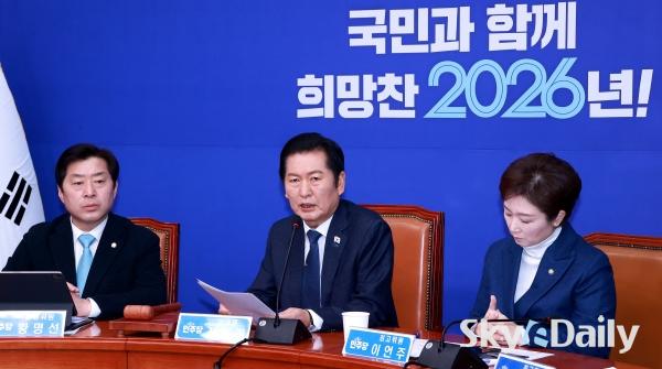 ¡ã Á¤Ã»·¡ ´õºÒ¾î¹ÎÁÖ´ç ´ëÇ¥°¡ 5ÀÏ ¿ÀÀü ¼¿ï ¿©Àǵµ ±¹È¸¿¡¼ ¿¸° ÃÖ°íÀ§¿øÈ¸ÀÇ¿¡¼ ¹ß¾ðÀ» Çϰí ÀÖ´Ù. À̳¯ Á¤ ´ëÇ¥´Â ¾ß´ç°ú Çù»ó ÁßÀÎ ÅëÀϱ³ Ư°Ë°ú °ü·ÃÇØ ´ëÇØ ¡°±¹¹ÎÀÇÈû¿¡¼ ½ÅõÁö¸¦ »©ÀÚ°í ÇÏ´Ï±î ´õ ³Ö¾î¾ß°Ú´Ù¡±¸ç ¡°»õÇØ 1È£ ¹ý¾ÈÀº 2Â÷ Á¾ÇÕ Æ¯°Ë°ú ÅëÀϱ³, ½ÅõÁö Ư°ËÀÌ µÉ °Í¡±À̶ó°í ¹àÇû´Ù. ¹Ú¹Ì³ª ±âÀÚ ¨Ï½ºÄ«À̵¥Àϸ®