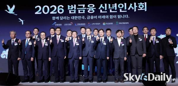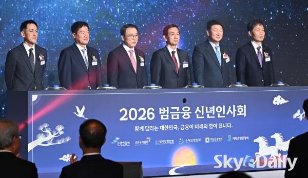 ¡ã 5ÀÏ ¿ÀÈÄ ¼­¿ï Áß±¸ ·Ôµ¥È£ÅÚ¿¡¼­ ¿­¸° ¡®2026 ¹ü±ÝÀ¶ ½Å³âÀλçȸ¡¯¿¡¼­ ÀÌâ¿ë(¾ÕÁÙ ¿ÞÂÊ ³× ¹øÂ°ºÎÅÍ) Çѱ¹ÀºÇà ÃÑÀç, ÀÌ¾ï¿ø ±ÝÀ¶À§¿øÀå, ÀÌÇüÀÏ ÀçÁ¤°æÁ¦ºÎ Á¦1Â÷°ü, ÀÌÂùÁø ±ÝÀ¶°¨µ¶¿øÀå µîÀ» ºñ·ÔÇÑ Âü¼®ÀÚµéÀÌ ±â³äÃÔ¿µÀ» Çϰí ÀÖ´Ù. ¹Ú¹Ì³ª ±âÀÚ ¨Ï½ºÄ«À̵¥Àϸ®
