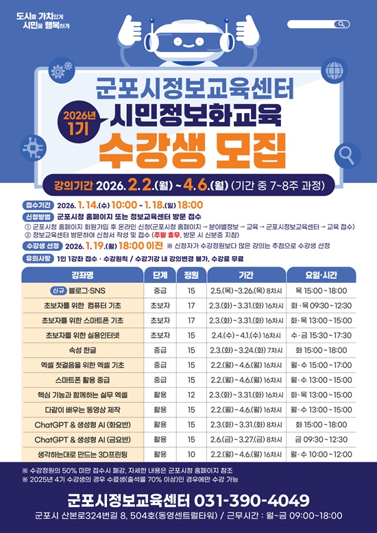°æ±âµµ ±ºÆ÷½Ã°¡ ½Ã¹ÎµéÀÇ Á¤º¸È ½Ã´ë¿¡ ´ëÇÑ ÀûÀÀ ´É·Â Çâ»ó ¹× Á¤º¸ ¼Ò¿Ü °èÃþÀÇ µðÁöÅÐ °ÝÂ÷ ÇØ¼Ò¸¦ À§ÇØ ¿î¿µµÇ´Â ¡®2026³â 1±â ½Ã¹ÎÁ¤º¸È±³À°¡¯ÀÇ ¼ö°»ýÀ» 14ÀϺÎÅÍ 18ÀϱîÁö ¸ðÁýÇÑ´Ù°í 7ÀÏ ¹àÇû´Ù.