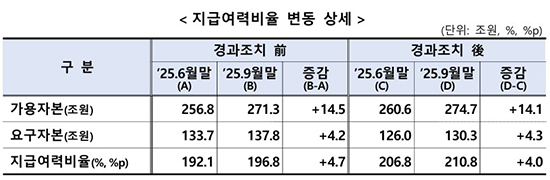 ±ÝÀ¶°¨µ¶¿øÀÌ 6ÀÏ ¹ßÇ¥ÇÑ ¡¯2025.9¿ù ¸» ±âÁØ º¸Çèȸ»ç Áö±Þ¿©·ÂºñÀ² ÇöȲ¡¯¿¡ µû¸£¸é »ýº¸»çÀÇ Áö±Þ¿©·Â ºñÀ²Àº 201.4%(+0.5%p), ¼Õº¸»ç´Â 224.1%(+9.5%p)·Î Áý°èµÆ´Ù. Áö±Þ¿©·ÂºñÀ²ÀÌ »ó½ÂÇÑ µ¥¿¡´Â °¡¿ëÀÚº»ÀÌ Áõ°¡ÇÑ °ÍÀÌ ÇѸòÇß´Ù.