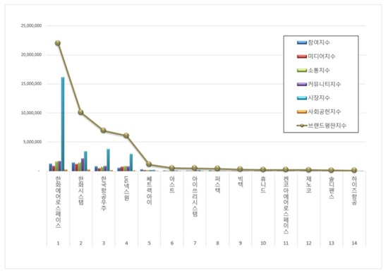 1À§, ÇÑÈ¿¡¾î·Î½ºÆäÀ̽º ºê·£µå´Â Âü¿©Áö¼ö 1,274,325 ¹Ìµð¾îÁö¼ö 887,829 ¼ÒÅëÁö¼ö 1,637,763 Ä¿¹Â´ÏƼÁö¼ö 1,716,387 ½ÃÀåÁö¼ö 16,180,854 »çȸ°øÇåÁö¼ö 279,477ÀÌ µÇ¸é¼ ºê·£µåÆòÆÇÁö¼ö 21,976,635·Î ºÐ¼®µÆ´Ù. Áö³ 12¿ù ºê·£µåÆòÆÇÁö¼ö 21,142,126°ú ºñ±³Çغ¸¸é 3.95% »ó½ÂÇß´Ù.