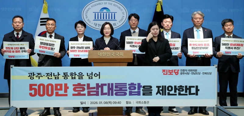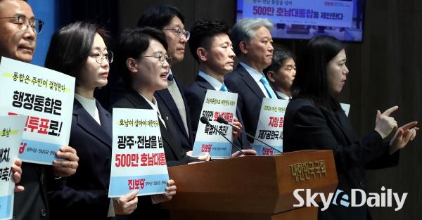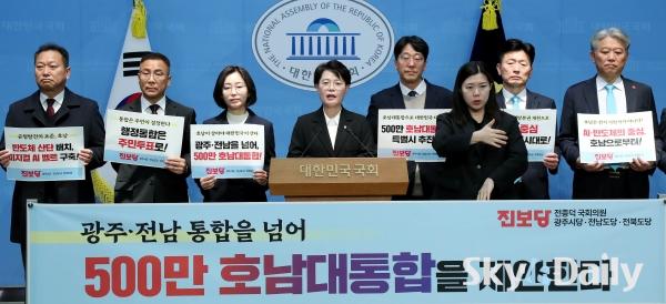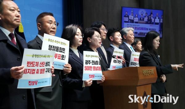 ¡ã ±¤ÁÖ¡¤Àü³² ÇàÁ¤ÅëÇÕ ³íÀǰ¡ Á¤Ä¡±Ç ÇÙ½É À̽´·Î ¶°¿À¸¥ °¡¿îµ¥ ÀÌÁ¾¿í Áøº¸´ç ±¤ÁÖ±¤¿ª½ÃÀå Èĺ¸¿Í ±èÁÖ¾÷ ±¤Áֽôç À§¿øÀå, Áøº¸´ç È£³² 3°³ ½Ãµµ´ç À§¿øÀå°ú Áö¹æ¼±°Å È帵éÀÌ 8ÀÏ ±¹È¸ ¼ÒÅë°ü¿¡¼ ±âÀÚȸ°ßÀ» ¿°í ¡®±¤ÁÖ¡¤Àü³² ÅëÇÕ¡¯À» ³Ñ¾î ¡®±¤ÁÖ¡¤Àü³²¡¤ÀüºÏ 500¸¸ È£³²´ëÅëÇÕ Æ¯º°½Ã¡¯ ÃßÁøÀ» Á¦¾ÈÇß´Ù. ¼öµµ±Ç 1±Ø üÁ¦¸¦ ±Øº¹ÇÏ°í ±¹°¡ÀÚ¿ø ÀçºÐ¹è·Î ´ëÇѹα¹ÀÇ Áö¼Ó°¡´ÉÇÑ ¼ºÀå°ú È£³² Àü¼º±â¸¦ ¿°Ú´Ù´Â ±¸»óÀÌ´Ù. ¹Ú¹Ì³ª ±âÀÚ ¨Ï½ºÄ«À̵¥Àϸ®