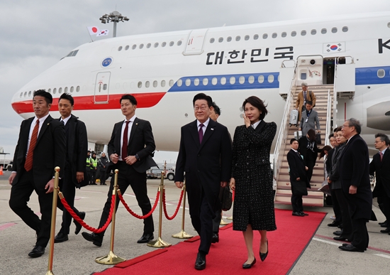 ¡ã ÀÌÀç¸í ´ëÅë·É°ú ±èÇý°æ ¿©»ç°¡ 13ÀÏ ÀϺ» ¿À»çÄ« °£»çÀ̱¹Á¦°øÇ׿¡ µµÂøÇÑ °ø±º 1È£±â¿¡¼­ ³»·Á À̵¿Çϰí ÀÖ´Ù. ¿À»çÄ«=¿¬ÇÕ´º½º