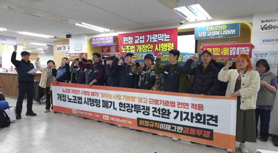 ºñÁ¤±ÔÁ÷ÀÌÁ¦±×¸¸°øµ¿ÅõÀïÀº 16ÀÏ ¼¿ï°í¿ë³ëµ¿Ã» 3Ãþ¿¡¼ ³ëÁ¶¹ý ½ÃÇà·É Æó±â¸¦ ¿ä±¸ÇÏ´Â ±âÀÚȸ°ßÀ» ÁøÇàÇß´Ù.
