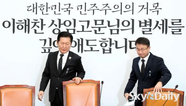 ¡ã Á¤Ã»·¡(°¡¿îµ¥) ´õºÒ¾î¹ÎÁÖ´ç ´ëÇ¥¿Í ÇѺ´µµ ¿ø³»´ëÇ¥¸¦ ºñ·ÔÇÑ ÃÖ°íÀ§¿øµéÀÌ 26ÀÏ ¼¿ï ¿©Àǵµ ±¹È¸¿¡¼ ¿¸° ÃÖ°íÀ§¿øÈ¸ÀÇ¿¡¼ ÀÌÇØÂù Àü ±¹¹«ÃѸ®ÀÇ º°¼¼¸¦ ¾ÖµµÇÏ¸ç ¹¬³äÇϰí ÀÖ´Ù. ¹Ú¹Ì³ª ±âÀÚ ¨Ï½ºÄ«À̵¥Àϸ®