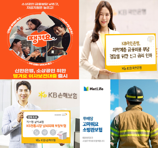 KB±¹¹ÎÄ«µå´Â ¡®MyBiz »çÀå´Ôµçµç ±â¾÷Ä«µå¡¯, ½ÅÇÑÀºÇàÀº ¡®½ÅÇÑ Ã»³â ±ÝÀ¶Áö¿ø ÆÐŰÁö¡¯, ÇÑȼÕÇØº¸ÇèÀº ¿©¼º°Ç°º¸Çè Àӽš¤Ãâ»ê Ư¾àÀ¸·Î °¢°¢ ¿ì¼ö±â°ü¿¡ À̸§À» ¿Ã·È´Ù.