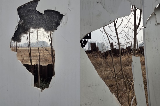 Ææ½º ÇÑÂÊÀº ¹Ù¶÷¿¡ µé¶° Âõ°Ü ÀÖ¾ú´Ù. ±¸¸Û ³Ê¸Ó·Î ¸¶¸¥ Àâ¸ñ°ú °¥»ö Ç®, ³ì½¼ öÆÇÀÌ º¸¿´´Ù. µµ½ÃÀÇ ¹Ì·¡¸¦ Â÷´ÜÇÏ·Á ¼¼¿î º®ÀÌ ¿ÀÈ÷·Á ³»ºÎ¸¦ µå·¯³»´Â âÀÌ µÈ ¼ÀÀÌ´Ù. ¸Ö¸® ¿©Àǵµ¡¤°­³² ¹æÇâÀÇ °íÃþ ºôµùµéÀÌ ¿¶Àº ¹Ì¼¼¸ÕÁö ³Ê¸Ó·Î È帴ÇÏ°Ô ¶° ÀÖ¾ú´Ù. ¼­¿ïÀÇ ´Ù¸¥ ¡®¿Ï¼ºµÈ Á߽ɡ¯ »çÀÌ¿¡¼­ À̰÷Àº, °ú°Å°¡ ºüÁ®³ª°£ ÀÚ¸®¿¡ ¹Ì·¡°¡ ¾ÆÁ÷ µé¾î¼­Áö ¸øÇÑ ¡®µµ½ÃÀÇ °ø¹é¡¯Ã³·³ º¸¿´´Ù.