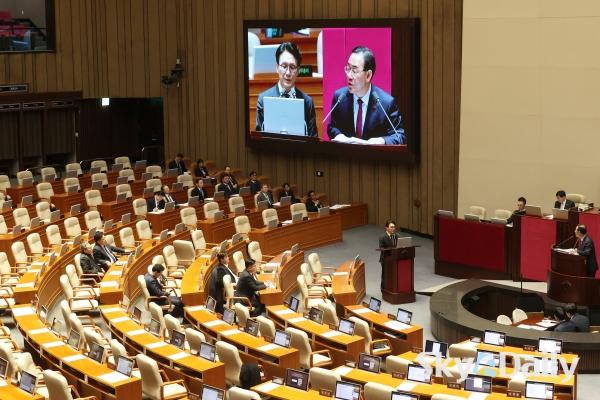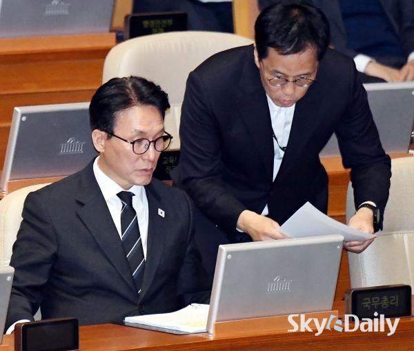 ¡ã ±è¹Î¼® ±¹¹«ÃѸ®°¡ 9ÀÏ ±¹È¸ º»È¸ÀÇÀå¿¡¼ ¿¸° Á¤Ä¡¡¤¿Ü±³¡¤ÅëÀÏ¡¤¾Èº¸ ºÐ¾ß ´ëÁ¤ºÎÁú¹®¿¡¼ ±¹¹ÎÀÇÈû ÁÖÈ£¿µ ÀÇ¿øÀÇ Áú¹®¿¡ ´äÇϰí ÀÖ´Ù. À̳¯ºÎÅÍ »çÈ굿¾È ±¹È¸ ´ëÁ¤ºÎ Áú¹®ÀÌ ½ÃÀ۵ȴÙ. ÀÌÀç¸í Á¤ºÎ 2³âÂ÷ ±¹Á¤ ¼º°ú¸¦ °Á¶ÇÏ·Á´Â ¹ÎÁÖ´ç°ú °ü¼¼ Çù»ó, ºÎµ¿»ê ¹®Á¦ µîÀ» Ãß±ÃÇÏ·Á´Â ±¹¹ÎÀÇÈû °£ °ø¹æÀÌ ½ÃÀ۵ƴÙ. ¹Ú¹Ì³ª ±âÀÚ ¨Ï½ºÄ«À̵¥Àϸ®