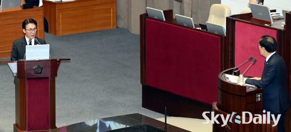 ¡ã ±è¹Î¼® ±¹¹«ÃѸ®°¡ ´õºÒ¾î¹ÎÁÖ´ç À±ÈÄ´ö ÀÇ¿øÀÇ Áú¹®¿¡ ´äÇϰí ÀÖ´Ù.