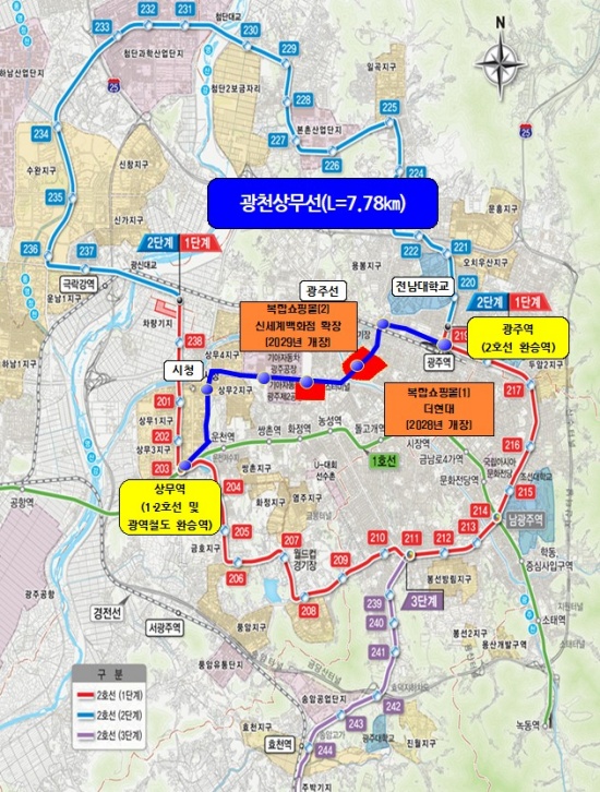 ±¤Ãµ»ó¹«¼±Àº ±¤ÁÖÁ¾ÇÕ¹ö½ºÅ͹̳ΰú ±¤ÁÖ±â¾ÆÃ¨ÇǾð½ºÇÊµå µî ±âÁ¸¿¡ ±³Åë Á¢±Ù¼ºÀÌ »ó´ëÀûÀ¸·Î Ãë¾àÇß´ø Áö¿ªÀ» ÃÎÃÎÈ÷ ¿¬°áÇÑ´Ù. ¶Ç 2028³â °³ÀåÀ» ¸ñÇ¥·Î ÃßÁø ÁßÀÎ º¹ÇÕ¼îÇθô Á¶¼º µî ±¤Ãµ±Ç¿ª ´ë±Ô¸ð °³¹ß »ç¾÷°ú ¿¬°èµÅ ±³Åë¹®Á¦ ÇØ°á°ú Áö¿ª¿¡ Ȱ·ÂÀ» ºÒ¾î³ÖÀ» °ÍÀ¸·Î ±â´ëµÈ´Ù.