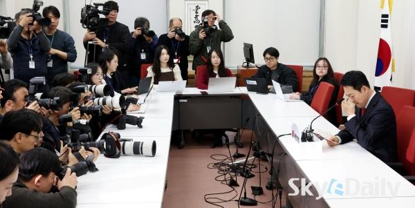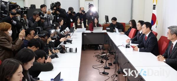 ¡ã À嵿Çõ ±¹¹ÎÀÇÈû ´ëÇ¥°¡ 12ÀÏ ¼¿ï ¿©Àǵµ ±¹È¸¿¡¼ ±âÀÚȸ°ßÀ» ¿°í û¿Í´ë ¿ÀÂù ºÒÂü Àǻ縦 ¹àÈ÷°í ÀÖ´Ù. À̳¯ Àå ´ëÇ¥´Â ´ëÅë·ÉÀÌ ¡°ÇÑ ¼ÕÀ¸·Î Ä®À» ¼û±â°í ÇÑ ¼ÕÀ¸·Î ¾Ç¼ö¸¦ ûÇÏ´Â °Í¿¡ ÀÀÇÒ ¼ö´Â ¾ø´Â ³ë¸©¡± À̶ó°í ¸»Çß´Ù. ¹Ú¹Ì³ª ±âÀÚ ¨Ï½ºÄ«À̵¥Àϸ®