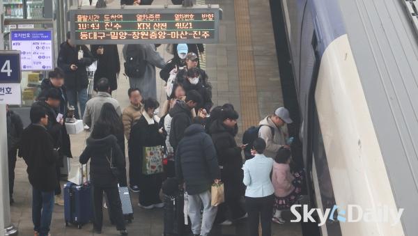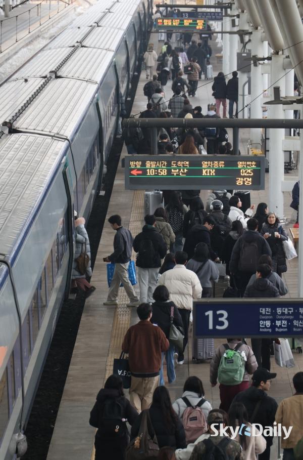 ¡ã ´å»õ°£ÀÇ ¼³ ¸íÀý ¿¬ÈÞ¸¦ ¾ÕµÐ 13ÀÏ ¿ÀÀü ¼¿ï¿ª¿¡¼ ±Í¼º±æ¿¡ ¿À¸¥ ½Ã¹ÎµéÀÌ KTX ¿Â÷¿¡ ž½ÂÇϱâ À§ÇØ À̵¿Çϰí ÀÖ´Ù. ¿ÀÀüºÎÅÍ ±Í¼º°´µéÀÌ ¸ô·Áµç ¼¿ï¿ªÀº ÁÖ¿ä Áö¹æ µµ½Ã·Î ³»·Á°¡´Â KTX ½ÂÂ÷±ÇÀÌ ÀÌ¹Ì »ó´ç¼ö°¡ ¸ÅÁøµÈ »óÅ´Ù. Á¤ºÎ´Â À̳¯ºÎÅÍ 18ÀϱîÁö ¡®¼³ ¿¬ÈÞ Æ¯º°±³Åë ´ëÃ¥ ±â°£¡¯ µ¿¾È ¸ðµÎ 2õ780¸¸¸íÀÌ À̵¿ÇÒ °ÍÀ¸·Î Àü¸ÁÇÑ´Ù. ¹Ú¹Ì³ª ±âÀÚ ¨Ï½ºÄ«À̵¥Àϸ®