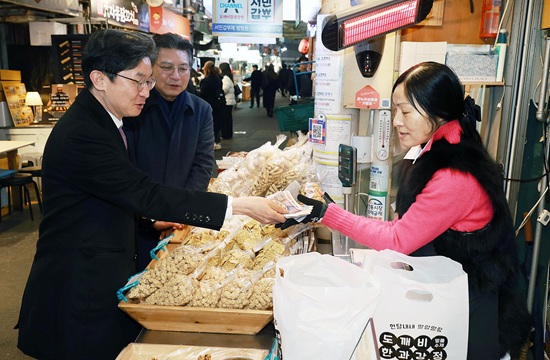 ÀÌ¾ï¿ø ±ÝÀ¶À§¿øÀåÀÌ ¼³ ¸íÀýÀ» ¾ÕµÎ°í ÀüÅë½ÃÀåÀ» ã¾Æ ¹Î»ýÇöÀåÀ» »ìÆñ´Ù.