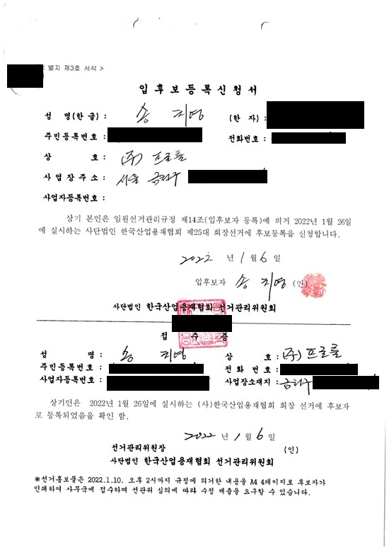 ¾Õ¼ ¼Û ȸÀåÀº Áö³ 2022³â 1¿ù ¢ßÇÁ·ÎÅç ´ëÇ¥ÀÌ»ç ÀÚ°ÝÀ¸·Î Çѱ¹»ê¾÷¿ëÀçÇùȸ ȸÀå ¼±°Å¿¡ Ãâ¸¶ÇØ ´ç¼±µÆ´Ù.