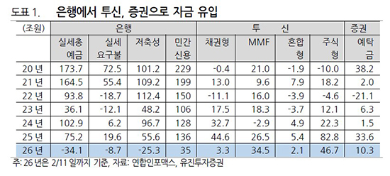 ÀÚ±Ý À̵¿À» º¸¿©ÁÖ´Â ¼ýÀÚµµ ±¸Ã¼ÀûÀ¸·Î Á¦½ÃÇß´Ù. ÀÌ´Þ 11ÀϱîÁö Áý°è ±âÁØÀ¸·Î ÀºÇà ¿¹±ÝÀº 34Á¶1000¾ï ¿ø °¨¼ÒÇÑ ¹Ý¸é, Åõ½Å±Ç ÁÖ½ÄÇü ÆÝµå·Î 46Á¶7000¾ï ¿øÀÌ À¯ÀԵưí MMF·Îµµ 34Á¶5000¾ï ¿ø ´Ã¾ú´Ù. Áõ±Ç»ç °í°´ ¿¹Å¹±Ýµµ 10Á¶3000¾ï ¿ø Áõ°¡Çß´Ù. À¯ÁøÅõÀÚÁõ±ÇÀº ƯÈ÷ ¡®2°³¿ùÀÌ Ã¤ ¾È µÇ´Â ±â°£¡¯¿¡ ÁÖ½ÄÇü ÆÝµå·Î µé¾î¿Â µ·ÀÌ Áö³ÇØ ÇÑ ÇØ À¯ÀÔ ±Ô¸ðÀÎ 83Á¶ ¿øÀÇ Àý¹ÝÀ» ³Ñ°å´Ù´Â Á¡À» °Á¶Çß´Ù. MMF ¿ª½Ã °°Àº ±â°£µ¿¾È Áö³ÇØ ¿¬°£ À¯ÀÔ ±Ô¸ðÀÎ 26Á¶5000¾ï ¿øÀ» ÀÌ¹Ì ³Ñ¾î¼¹´Ù°í ºÐ¼®Çß´Ù.