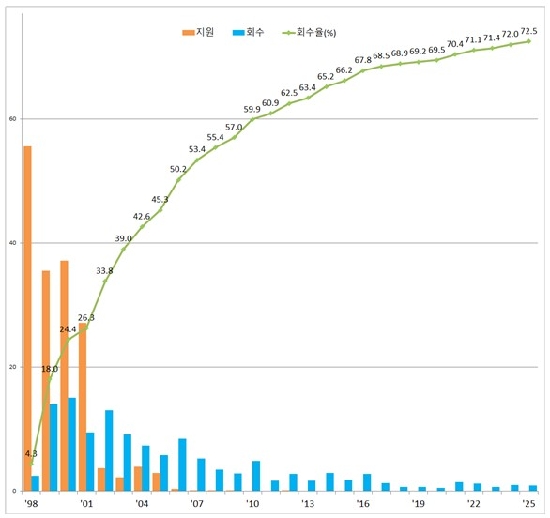 Á¤ºÎ°¡ ±ÝÀ¶¾ÈÁ¤À» À§ÇØ ±ÝÀ¶»ç µî¿¡ ÅõÀÔÇÑ °øÀûÀÚ±ÝÀº ¿ÜȯÀ§±â°¡ ÅÍÁø Á÷ÈÄÀÎ 1998³â °¡ÆÄ¸£°Ô Áõ°¡Çß´Ù. 2013³âµµ ÀÌÈÄ ½Å±Ô ÅõÀÔÀÌ »ç½Ç»ó Á¾·áµÆÀ¸³ª ȸ¼ö ÀÛ¾÷Àº °è¼ÓµÇ´Â ÁßÀÌ´Ù.