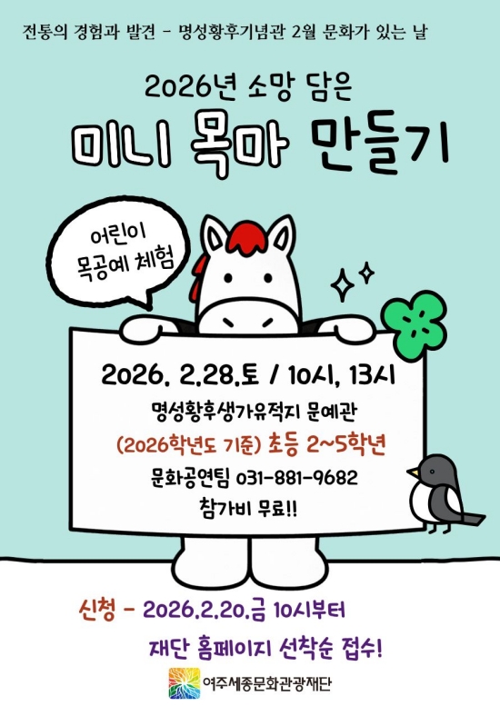 °æ±âµµ ¿©ÁÖ¼¼Á¾¹®È°ü±¤Àç´ÜÀÌ 28ÀÏ ¸í¼ºÈ²Èıâ³ä°ü 2¿ù ¹®È°¡ ÀÖ´Â ³¯ ÇÁ·Î±×·¥À¸·Î ¡®2026³â º´¿À³â ¼Ò¸ÁÀ» ´ãÀº ¹Ì´Ï ¸ñ¸¶ ¸¸µé±â¡¯¸¦ ÁøÇàÇÑ´Ù°í 26ÀÏ ¹àÇû´Ù.
