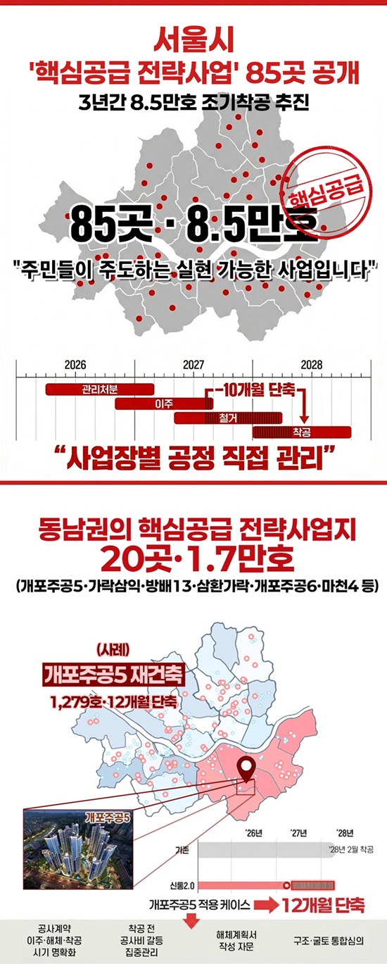 ¼¿ïƯº°½Ã´Â 26ÀÏ ¡®Á¤ºñ»ç¾÷ ÃßÁø Á¤»óÈ ¹æ¾È¡¯À» ¹ßÇ¥Çϰí, 2026~2028³â 3³â°£ Âø°øÀÌ °¡´ÉÇÑ 85°³ ±¸¿ª(¾à 8¸¸5000°¡±¸)À» ¡®Çٽɰø±Þ Àü·«»ç¾÷¡¯À¸·Î ¼±Á¤ÇØ ÁýÁß Áö¿øÇÑ´Ù°í ¹àÇû´Ù. ÀÌ´Â ±âÁ¸ ¸ñÇ¥(7¸¸9000°¡±¸)º¸´Ù 6000°¡±¸ ´Ã¾î³ ±Ô¸ð´Ù.