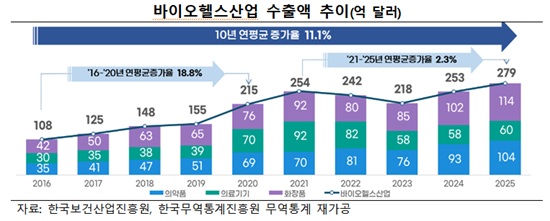 5ÀÏ Çѱ¹º¸°Ç»ê¾÷ÁøÈï¿ø¿¡ µû¸£¸é 2025³â ¹ÙÀÌ¿ÀÇコ»ê¾÷ ¼öÃâ¾×Àº ¿ª´ë ÃÖ°íÀÎ 279¾ï ´Þ·¯·Î Àü³â µ¿±â ´ëºñ 10.3% »ó½ÂÇß´Ù.