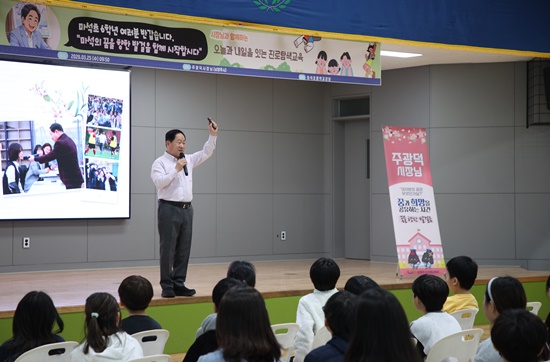 ¡ãÁÖ±¤´ö ³²¾çÁÖ ½ÃÀåÀÌ ¸¶¼®ÃÊ 6Çгâ ÇлýÀ» ´ë»óÀ¸·Î Áø·ÎƯ°­À» ¿­°í ²Þ°ú Èñ¸ÁÀÇ ¸Þ½ÃÁö¸¦ Àü´ÞÇϰí ÀÖ´Ù. ³²¾çÁÖ½Ã