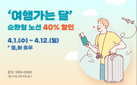 À̹ø Çà»ç´Â º»°ÝÀûÀÎ º½ ¿©ÇàöÀ» ¸Â¾Æ ÀÎõÀ» ¹æ¹®ÇÏ´Â °ü±¤°´µéÀÌ º¸´Ù °æÁ¦ÀûÀÌ°í Æí¸®ÇÏ°Ô ÁÖ¿ä °ü±¤Áö¸¦ µÑ·¯º¼ ¼ö ÀÖµµ·Ï ¸¶·ÃµÆ´Ù. ÇÒÀÎ Àû¿ë ½Ã ¼øÈ¯Çü ³ë¼± ÀÌ¿ë±ÇÀ» Á¤»ó°¡ ´ëºñ 40% ÇÒÀÎµÈ °¡°ÝÀ¸·Î ±¸¸ÅÇÒ ¼ö ÀÖ´Ù. ´Ù¸¸ ¿ù¿äÀϰú È¿äÀÏÀº Á¤±â ÈÞ¹«ÀÏ·Î ¿îÇàÇÏÁö ¾ÊÀ¸¸ç, Ÿ ÇÒÀÎ ÇýÅðúÀÇ Áߺ¹ Àû¿ëÀº ºÒ°¡ÇÏ´Ù.
