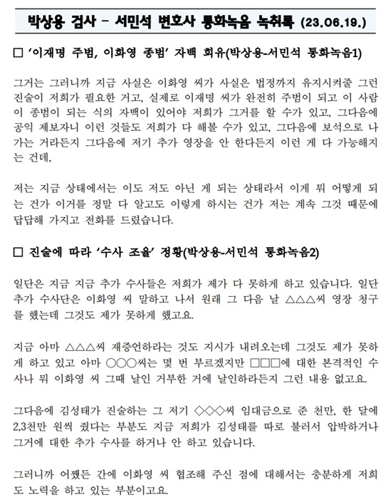 ³í¶õÀÇ ´ç»çÀÚÀÎ ¹Ú °Ë»ç´Â À̳¯ SNS¸¦ ÅëÇØ ¡°ÀÌ´Â ¼¹Î¼® º¯È£»çÀÇ ¡®ÀÌÈ¿µ Á¾¹ü ÀÇÀ²¡¯À̶ó´Â ¹«¸®ÇÑ ¿ä±¸¿¡ ´ëÇÑ °Ë»ç°¡ °ÅÀýÇÏ¸ç ¼³¸íÇÑ ³»¿ëÀ» ¹ßÃéÇϰí Â¥±é±âÇÑ °Í¿¡ ºÒ°úÇÏ´Ù¡±°í ¹Ý¹ÚÇß´Ù.