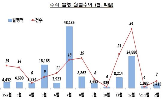 ÁÖ½Ä ¹ßÇà ±Ô¸ð´Â ÃÑ 3415¾ï ¿øÀ¸·Î Àü¿ù 1082¾ï ¿ø°ú ºñ±³ÇØ 215.6% ±ÞÁõÇÑ ¼öÁØÀ̾ú´Ù. ¹ßÇà °Ç¼ö ¶ÇÇÑ Àü¿ù 4°Ç¿¡¼ 7°ÇÀ¸·Î ¶Ù¾ú´Ù. ÁÖ½Ä ¹ßÇàÀ» ÅëÇÑ ÀÚº» È®Ãæ ½Ãµµ°¡ Ȱ¹ßÇßÀ½À» ¾Ë ¼ö ÀÖ´Â ´ë¸ñÀÌ´Ù.