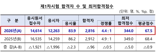 2026³âµµ °øÀÎȸ°è»ç Á¦1Â÷½ÃÇè ÇÕ°ÝÀÚ°¡ 2816¸íÀ¸·Î È®Á¤µÆ´Ù. ±ÝÀ¶À§¿øÈ¸¿Í ±ÝÀ¶°¨µ¶¿øÀº 3¿ù 2ÀÏ ½Ç½ÃÇÑ Á¦61ȸ °øÀÎȸ°è»ç Á¦1Â÷½ÃÇè äÁ¡ °á°ú, ÀÀ½ÃÀÚ 1¸¸2263¸í °¡¿îµ¥ °ú¸ñº° °ú¶ô ¾øÀÌ Æò±Õ 6ÇÒ ÀÌ»óÀ» µæÁ¡ÇÑ ÀÀ½ÃÀÚ Áß °íµæÁ¡ÀÚ ¼øÀ¸·Î 2816¸íÀ» ÇÕ°ÝÀÚ·Î °áÁ¤Çß´Ù°í 31ÀÏ ¹àÇû´Ù.
