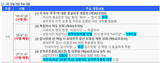 ±×·¯¸é¼­ ¡°±Ã±ØÀûÀ¸·Î´Â ±â¾÷ °Å¹ö³Í½º¿Í ÀϹÝÁÖÁÖ ±ÇÀÍÀ» ³ô¿© Çѱ¹ ÀÚº»½ÃÀåÀÇ ½Å·Ú¸¦ ȸº¹Çϰí Áõ½Ã¸¦ ºÎ¾çÇÏ´Â µ¥ ÃÊÁ¡ÀÌ ¸ÂÃçÁ® ÀÖ´Ù¡±°í ¸»Çß´Ù. °³Á¤ ³»¿ëÀº ¡âÀÌ»çÀÇ ÁÖÁÖ Ãæ½ÇÀǹ« ¸í¹®È­ ¡âµ¶¸³ÀÌ»ç ºñÀ² È®´ë ¡â3%·ê °­È­ ¡âÀüÀÚÁÖÁÖÃÑȸ Àǹ«È­ ¡âÁýÁßÅõÇ¥Á¦ Àǹ«È­ ¡â°¨»çÀ§¿ø ºÐ¸®¼±Ãâ È®´ë ¡âÀÚ±âÁÖ½Ä ±Ç¸® Á¦ÇѰú Àǹ« ¼Ò°¢ µîÀÌ´Ù.