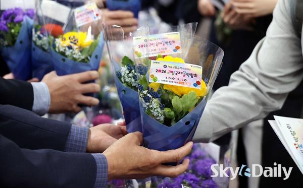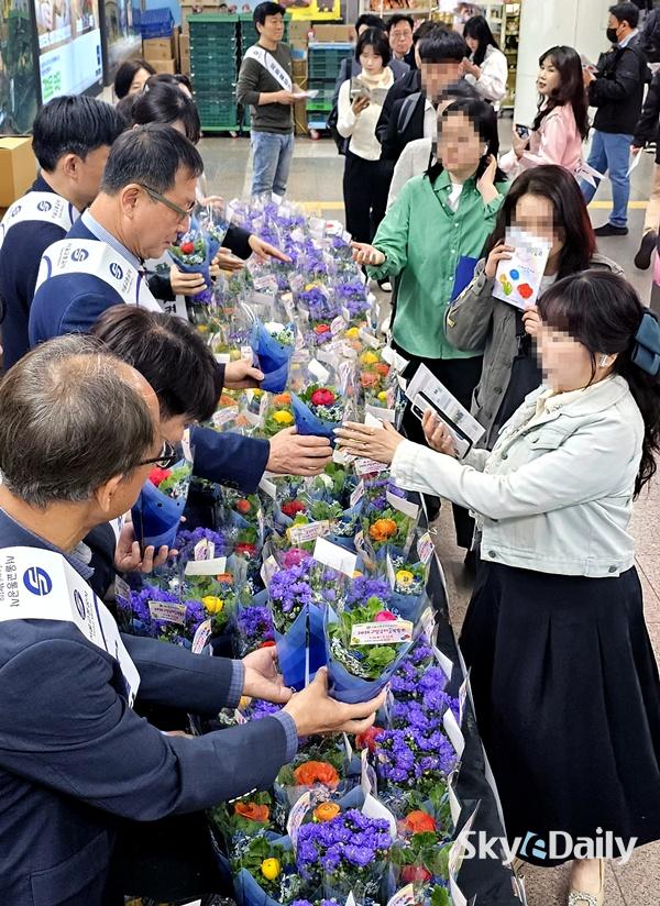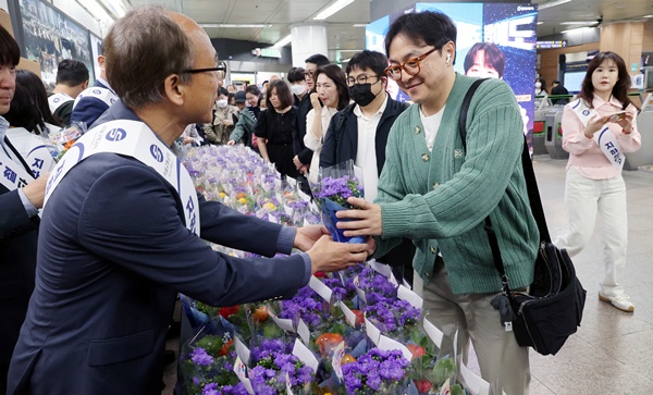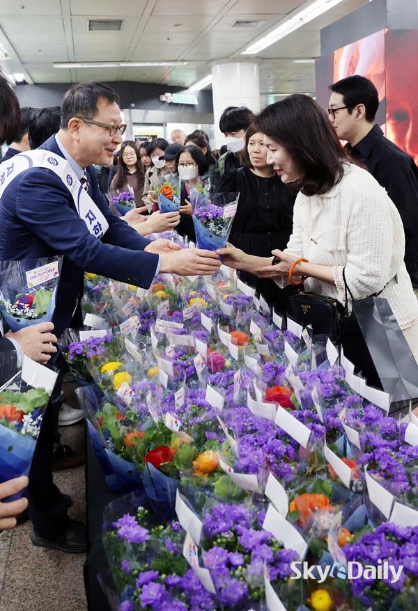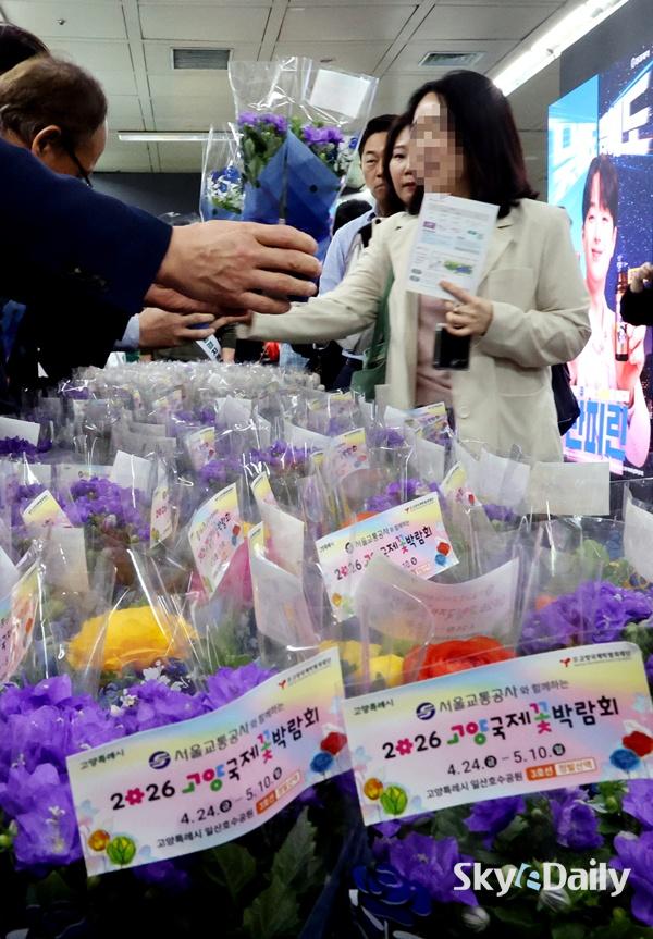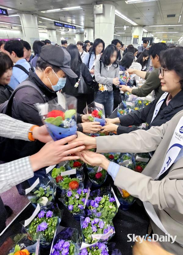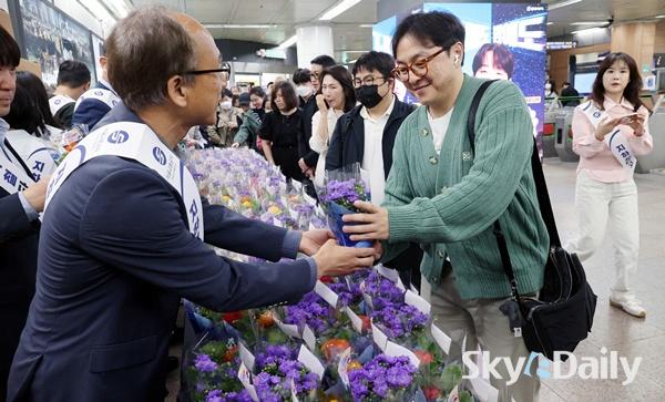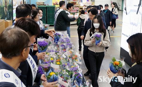 ¡ã ¼¿ï±³Åë°ø»ç ÀÓÁ÷¿øµéÀÌ 16ÀÏ ¿ÀÀü ¼¿ï ÁöÇÏö 5È£¼± ±¤È¹®¿ª¿¡¼ Ãâ±Ù±æ ½Ã¹Îµé¿¡°Ô º½¸ÂÀÌ ²É ȺÐÀ» ³ª´²ÁÖ°í ÀÖ´Ù. À̹ø Çà»ç´Â ´ëÁß±³Åë ÀÌ¿ë Ȱ¼ºÈ Ä·ÆäÀΰú ÇÔ²² ¿À´Â 4¿ù 26ÀÏ °³¸·ÇÏ´Â ¡®2024 °í¾ç±¹Á¦²É¹Ú¶÷ȸ¡¯¸¦ È«º¸Çϱâ À§ÇØ ¸¶·ÃµÆ´Ù. ÀÌÁ¾¿ø ±âÀÚ ¨Ï½ºÄ«À̵¥Àϸ®