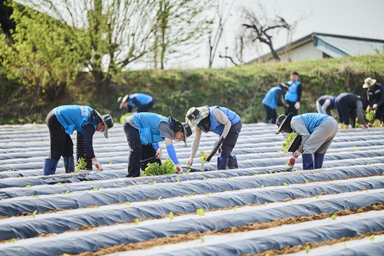 ±èÁ¾¿À KT&G ±èõ°øÀåÀåÀ» ºñ·ÔÇÑ ÀÓÁ÷¿ø ºÀ»ç´Ü 30¿© ¸íÀº ÃæÃ»ºÏµµ ÁøÃµ±º ÁøÃµÀ¾¿¡ À§Ä¡ÇÑ ÀÙ´ã¹è ³ó°¡¸¦ ¹æ¹®ÇØ ¾à 1¸¸3000§³(3900Æò) ±Ô¸ðÀÇ ³óÁö¿¡ ¾à 2¸¸4000ÁÖÀÇ ÀÙ´ã¹è ¸ðÁ¾À» À̽ÄÇÏ´Â ºÀ»çȰµ¿À» ÆîÃÆ´Ù.
