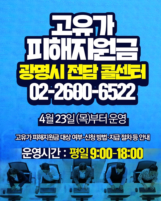 °æ±âµµ ±¤¸í½Ã°¡ ¡®°íÀ¯°¡ ÇÇÇØÁö¿ø±Ý¡¯ Áö±Þ °ü·Ã ¹Î¿ø¿¡ ½Å¼ÓÈ÷ ´ëÀÀÇϰíÀÚ 23ÀÏ Àü´ã Äݼ¾ÅÍ ¿î¿µ¿¡ ³ª¼¹´Ù.
