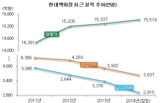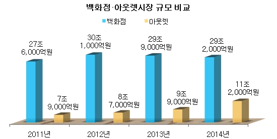 ±¹³» ¹éÈÁ¡ ½ÃÀåÀÌ Á¤Ã¼¿¡ ºÎµúÇû´Ù. Åë°èû¿¡ µû¸£¸é ¹éÈÁ¡ ½ÃÀå ±Ô¸ð´Â 2014³â 29Á¶2000¾ï¿ø, 2013³â 29Á¶8000¾ï¿øÀ¸·Î 2012³â 30Á¶1000¾ï¿øÀ» ³ÑÀº ÀÌÈÄ 2³â° ¼ºÀåÀÌ ´äº¸»óÅ´Ù. ¹Ý¸é ¾Æ¿ô·¿ ±Ô¸ð´Â ÇØ¸¶´Ù Áõ°¡ÇØ ¹éÈÁ¡ ½ÇÀû°ú ´ëÁ¶¸¦ º¸À̰í ÀÖ´Ù. 2011³â 7Á¶9000¾ï¿øÀÌ´ø ¾Æ¿ô·¿ ½ÃÀå ±Ô¸ð´Â 2012³â 8Á¶7000¾ï¿ø, 2013³â 11Á¶2000¾ï¿øÀ¸·Î ³ªÅ¸³µ´Ù. ¿Ã ¿¹»ó ½ÃÀå ±Ô¸ð´Â 12Á¶7000¾ï¿øÀ¸·Î Áö³Çغ¸´Ù 13% ÀÌ»ó ¼ºÀåÇÒ °ÍÀ¸·Î ¾÷°è´Â ³»´ÙºÃ´Ù. ÀÌ¿¡ ºñÇØ ¹éÈÁ¡ ½ÃÀåÀº °æ±âħüÀÇ ¿©ÆÄ·Î ¿ÃÇØ ¿ª½Ã 30Á¶¿øÀ» ¸ø ³ÑÀ» °Í °°´Ù´Â ¿¹»óÀÌ ÁÙÀ» À̾ú´Ù. À¯Åë ºò3, Áï ·Ôµ¥¡¤½Å¼¼°è¡¤Çö´ë¹éÈÁ¡Àº ÀÌ¹Ì ¾Æ¿ô·¿ ½ÃÀå¿¡¼ ÀüÀïÀ» ¹úÀ̰í ÀÖ´Â »óÅ´Ù. 2007³â ½Å¼¼°è±×·ì, 2008³â ·Ôµ¥±×·ìÀÌ ¾Æ¿ô·¿ ½ÃÀå¿¡ ¶Ù¾îµé¾ú°í ·Ôµ¥°¡ Àü±¹ 14°³, ½Å¼¼°è°¡ 3°³ ÁöÁ¡À» ¿î¿µÇϰí ÀÖ´Ù. Çö´ë¹éÈÁ¡Àº Áö³Çذ¡ µÅ¼¾ß ¾Æ¿ô·¿ °¡»êÁ¡À» À§Å¹°æ¿µ »óÅ·Π¿î¿µÀ» ½ÃÀÛÇÏ¸é¼ ¾÷°è¿¡ ÁøÃâÇß´Ù. ±×·± Çö´ë¹éÈÁ¡Àº Áö³ 27ÀÏ Çö´ëÇÁ¸®¹Ì¾ö¾Æ¿ô·¿ ±èÆ÷Á¡À» ¿ÀÇÂÇÏ¸ç ·Ôµ¥¿Í ½Å¼¼°è¿¡ µµÀüÀåÀ» ³Â´Ù. Çö´ë¹éÈÁ¡ÀÌ ´Ê°Ô³ª¸¶ ¾Æ¿ô·¿ ¾÷°è¿¡ ÁøÃâÇÑ °ÍÀº Á¤Áö¼± ȸÀåÀÇ ¼±ÅÃÀ̾ú´Ù. Çö´ë¹éÈÁ¡Àº ÃÖ±Ù ¸î ³â° ¸ÅÃâ¾×ÀÌ 1Á¶4000¾ï~1Á¶5000¾ï¿øÀ¸·Î ´ÃÁöµµ ÁÙÁöµµ ¾Ê´Â ¾îÁ¤ÂÄÇÑ »óÅ´Ù. ¾÷°è´Â À̸¦ Ÿ°³Çϱâ À§ÇØ Çö´ë¹éÈÁ¡ÀÌ ¾Æ¿ô·¿ ½ÃÀå¿¡ ÁøÃâÇÑ °ÍÀ¸·Î Ç®ÀÌÇß´Ù. Àç°è´Â ÀÌ·± Á¤ ȸÀåÀÇ ¼±ÅÃÀÌ °ú°Å Á¤ ȸÀåÀÇ ¼±ÅÃó·³ ÇÉÆ®°¡ ¾È ¸ÂÀº °Í ¾Æ´Ï³Ä´Â ÀǰßÀÌ ³ª¿Ô´Ù. 2000³â´ë ÃÊ¹Ý Á¤ ȸÀåÀÌ ±×·ì ºÎȸÀå¿¡ ¿À¸¥ ÀÌÈÄ ¾÷°è 2À§¿´´ø Çö´ë¹éÈÁ¡Àº 3À§ ½Å¼¼°è¿¡ ±× ÀÚ¸®¸¦ ³»ÁÖ°í ¸»¾Ò´Ù. ȸÀå ÀÚ¸®¿¡ ¿À¸¥ ÀÌÈÄ ¸®¹ÙÆ®¡¤ÇѼ¶ µî ÆÐ¼Ç¡¤°¡±¸¾÷ü¸¦ ÀμöÇßÀ¸³ª ½ÇÀûºÎÁøÀ» ¸éÄ¡ ¸øÇß´Ù. °Å±â¿¡ ¾Æ¿ô·¿ ½ÃÀåµµ °æÀï¾÷ü¿¡ ºñÇØ ³Ê¹« ´Ê°Ô ÁøÃâÇÑ °Í ¾Æ´Ï³Ä´Â ÁöÀûµµ Á¦±âµÆ´Ù. À̹ø ±èÆ÷Á¡ ¿ÀÇ¿¡ ´ëÇØ ¾÷°è¿¡¼´Â ÀǰßÀÌ ¾ù°¥¸®°í ÀÖ´Ù. Áö¸®»ó ÀÌÁ¡À» »ì¸° ÀûÀýÇÑ ¼ö¿´´Ù´Â Æò°¡¿Í ¼¿ï½Ã¹Îµé ¾ó¸¶³ª ÀÌ¿ëÇÒÁö ¹ÌÁö¼ö¶ó´Â ÀǰßÀ¸·Î ³ª´²Á³´Ù. ±×·¯¸é¼ Àϰ¢¿¡¼´Â Á¤ ȸÀåÀÇ °æ¿µ ÆÇ´Ü¿¡ °ËÁõÀÌ ÇÊ¿äÇÏ´Ù´Â ºñÆÇ±îÁö ³ª¿Ô´Ù. ½ºÄ«À̵¥Àϸ®°¡ Çö´ëÇÁ¸®¹Ì¾ö¾Æ¿ô·¿ °³Àå ÇöÀåÀ» µÑ·¯º¸°í ÀÌ¿¡ ´ëÇÑ ¾÷°è ¹ÝÀÀÀ» µé¾îºÃ´Ù.