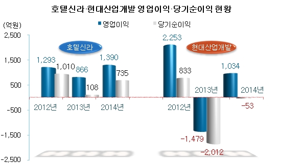 ¾÷°è´Â ¼·ÎÀÇ ÀÌÇØ°ü°è°¡ ¸Â¾Æ ¶³¾îÁø ÇÕÀÛÀ̶ó´Â ÆòÀÌ´Ù. È£ÅڽŶóÀÇ °æ¿ì ¸ÅÃâ 80% °¡·®À» Â÷ÁöÇÏ´Â ¸é¼¼»ç¾÷±ÇÀ» Ãß°¡·Î È®º¸ÇÏ·Á ÇÏÁö¸¸ ¡®ºÎÁö¡¯°¡ ºÎÁ·Çϰí Çö´ë»ê¾÷°³¹ßÀÇ °æ¿ì ¸ÅÃâÀÌ Á¡Â÷ °¨¼Ò¼¼¿¡ ÀÖ°í Áö³ 2013³â ¿µ¾÷ÀÌÀͰú ´ç±â¼øÀÌÀÍ µî¿¡¼ ¸¶À̳ʽº±îÁö ±â·ÏÇÑ °¡¿îµ¥ »õ·Î¿î ¡®¹Ì·¡ ¸Ô°Å¸®¡¯°¡ ÇÊ¿äÇßÀ» °ÍÀ̶ó´Â ºÐ¼®ÀÌ´Ù.