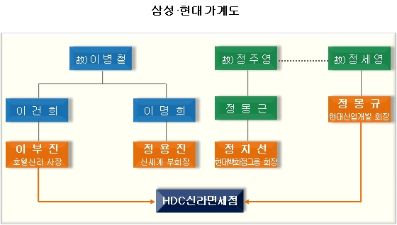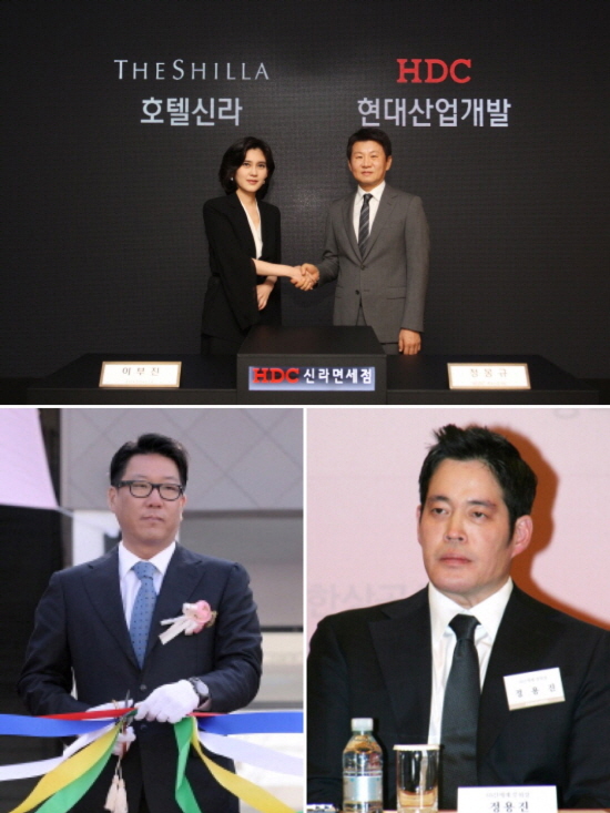 ¡ã À̺ÎÁø »çÀå°ú Á¤¸ù±Ô ȸÀåÀÇ µ¿¾÷ÀÌ Àç°èÀÇ ÁÖ¸ñÀ» ¹Þ°í ÀÖ´Â °¡¿îµ¥ Á¤Áö¼± Çö´ë¹éÈÁ¡±×·ì ȸÀå°ú Á¤¿ëÁø ½Å¼¼°è±×·ì ºÎȸÀåµµ ¼¿ï ½Ã³»¸é¼¼Á¡ °èȹÀ» ¹ßÇ¥ÇÑ ¹Ù ÀÖ¾î Ç÷¿¬ °£ °æÀïÀÌ Ä¡¿ÇØ Áú °ÍÀ¸·Î Àü¸ÁµÈ´Ù. ½ÅÇѱÝÀ¶ÅõÀÚ´Â °¡Àå °·ÂÇÑ ½Ã³»¸é¼¼Á¡ À¯Ä¡ È帷Π¡®HDC½Å¶ó¸é¼¼Á¡¡¯À» Á¡Âï¾ú´Ù. »çÁøÀº ¿ÞÂÊ ¾Æ·¡ºÎÅÍ ½Ã°è¹æÇâÀ¸·Î Çö´ë¹éÈÁ¡±×·ì Á¤Áö¼± ȸÀå, È£ÅڽŶó À̺ÎÁø »çÀå(¿ÞÂÊ), Çö´ë»ê¾÷°³¹ß Á¤¸ù±Ô ȸÀå [»çÁø=´º½Ã½º], ½Å¼¼°è±×·ì Á¤¿ëÁø ºÎȸÀå ¨Ï½ºÄ«À̵¥Àϸ®