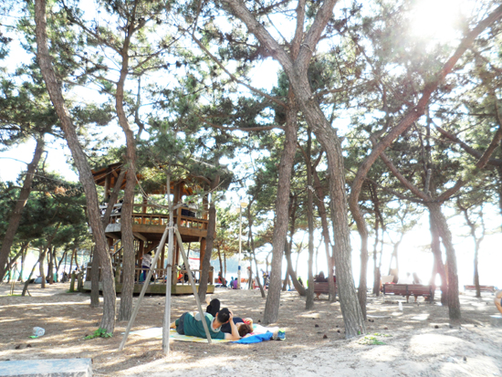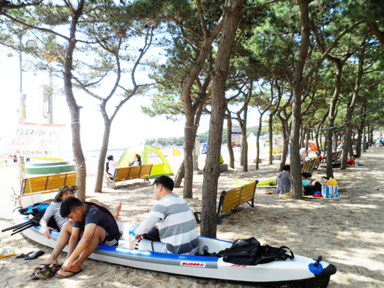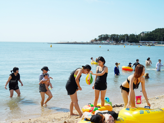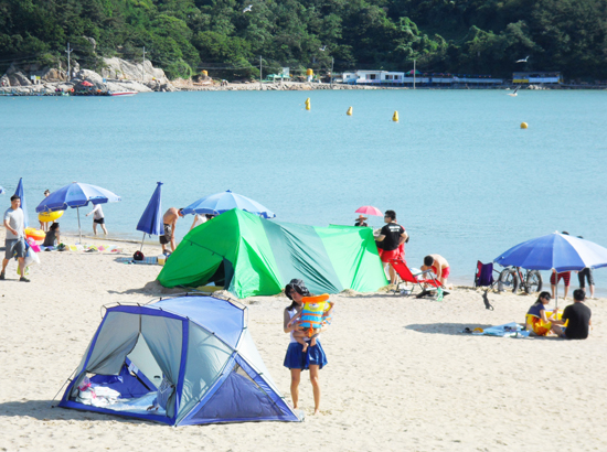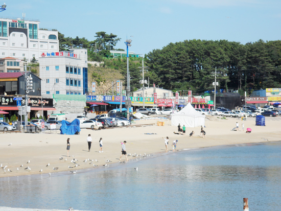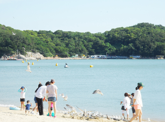 Ǫ¸¥ »ê°ú ½Ã¿øÇÑ ¹Ù´Ù, ÇØ¼Û(úáæ), ±â¾Ï±«¼®ÀÌ ¾î¿ì·¯Á® ÀÖ´Â À»¿Õ¸® ÇØ¼ö¿åÀå. ¼öµµ±Ç¿¡¼ °¡±õ°í ÀÚµ¿Â÷·Î ÁøÀÔÇÏ±â ÆíÇØ ¸¹Àº À̵éÀÌ Ã£´Â´Ù.